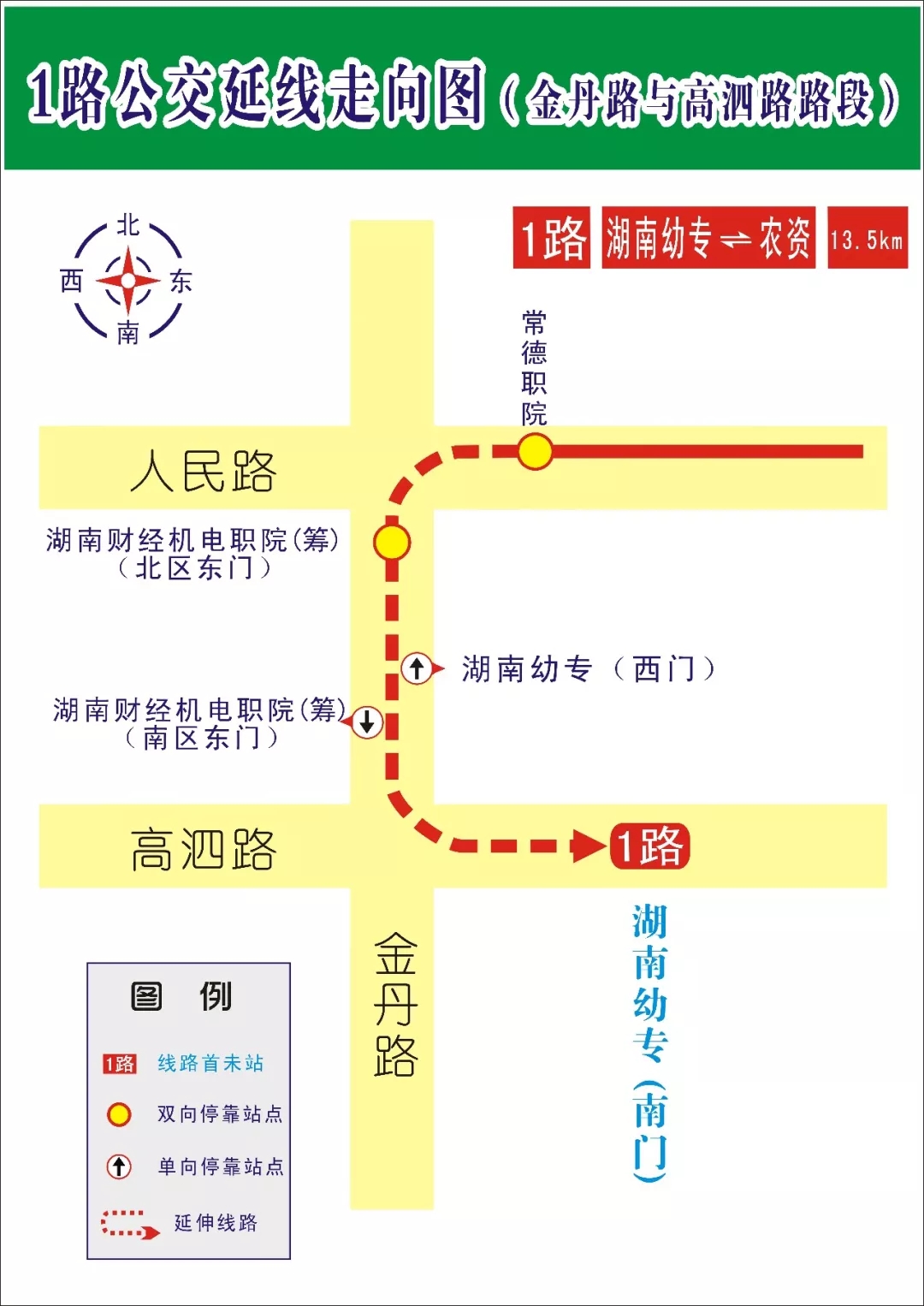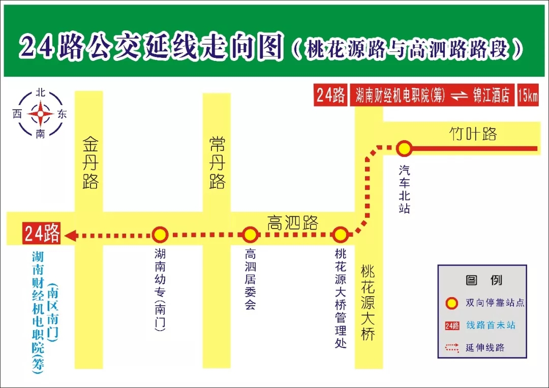 由原終點站常德汽車北站延伸至湖南財經(jīng)機電職院(籌)(南區(qū)南門)