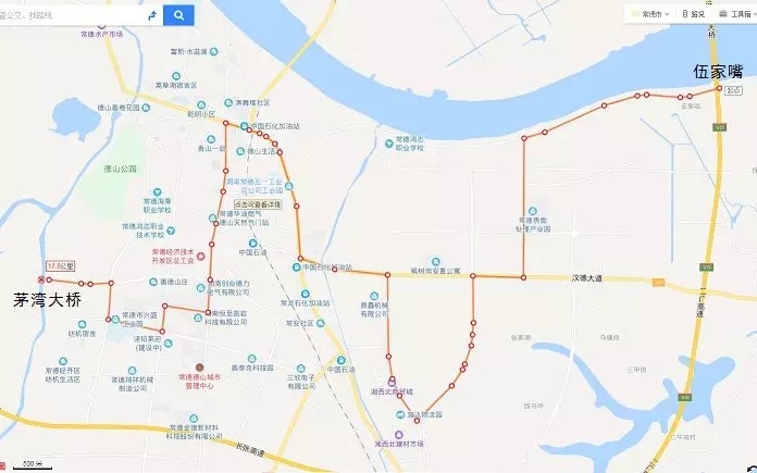 途經(jīng)站點(diǎn):伍家嘴→金海鋼構(gòu)→三合垸防汛抗旱指揮部→千噸級(jí)碼頭→常德表面材料產(chǎn)業(yè)園→力元新村→烏潭崗村→楓樹(shù)崗村安置小區(qū)→湖南華電西門(mén)→雙崗社區(qū)21組→常德水域救援大隊(duì)(緝毒刑偵大隊(duì))→茶葉崗→宜達(dá)物流→紅星美凱龍→昊天集團(tuán)→惠生國(guó)際→樟木橋派出所→五一村→澄冬一汽大眾4S店→桃花山→五一村安置小區(qū)→德山生活灣→德山工商銀行→二醫(yī)院→恒安集團(tuán)→德山經(jīng)開(kāi)區(qū)管委會(huì)→常德中小企業(yè)創(chuàng)業(yè)基地→廣積米業(yè)→崇德中學(xué)→茅灣大橋(原線返回)