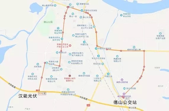 途經(jīng)站點(diǎn):德山公交站→茶葉崗村→常德水域救援大隊(duì)(緝毒刑偵大隊(duì))→雙崗社區(qū)21組→湖南華電西門(mén)→雙崗社區(qū)29組→楓樹(shù)崗安置小區(qū)→雙創(chuàng)大廈→惠生國(guó)際→樟木橋派出所→五一村→澄冬一汽大眾4S店→桃花山→五一安置小區(qū)→德山生活灣→德山十字路口→二醫(yī)院→蓮池小學(xué)→恒安紙業(yè)(西區(qū))→鴻志學(xué)校→中小產(chǎn)業(yè)園→廣積米業(yè)→崇德中學(xué)→紡機(jī)→漢能光伏(原線返回)