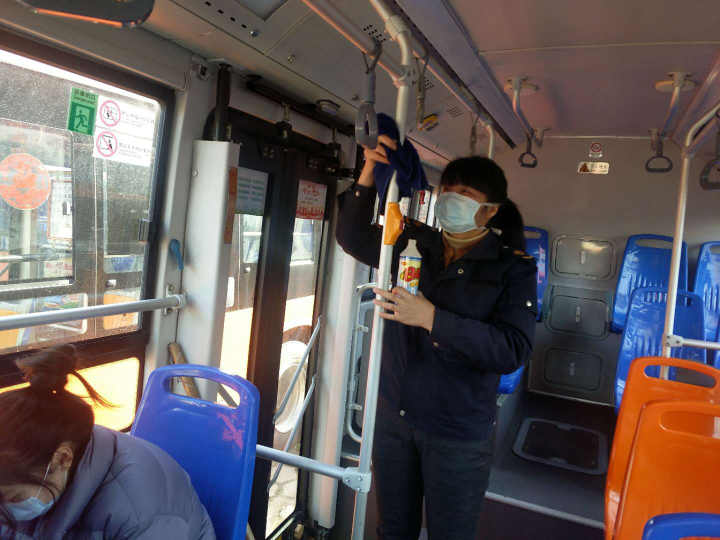 車輛每到終點站,童立杰都會認真按照防疫工作流程操作,一絲不茍地把車廂地板、扶手、座椅等各個角落打掃擦試得干干凈凈,她說:"多消毒一次車廂,心里便多一分踏實。在這個特殊時期,能為乘客的健康出行出點力,是應該的。"