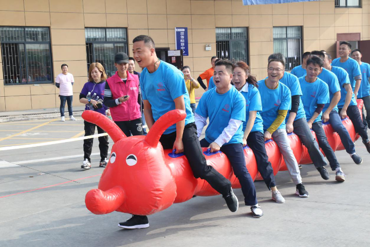 圖為員工們正在進(jìn)行“瘋狂毛毛蟲”比賽