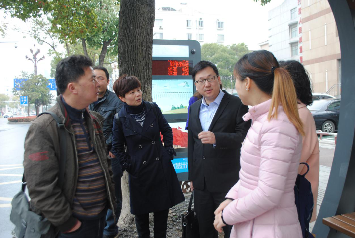 調(diào)研團(tuán)觀摩市交警支隊(duì)公交站點(diǎn)智能站牌