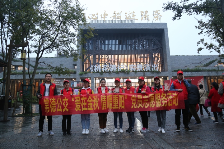 下午16:00,新坡社區(qū)近200名老年人在黨員志愿者們的陪同下,乘坐公交公司選派的愛心大巴車,前往桃花源景區(qū)觀看大型溪流漫游實(shí)景演出節(jié)目——《桃花源記》。因當(dāng)?shù)靥鞖獠患?,陰雨路滑,公交黨員志愿者們自發(fā)將活動(dòng)延伸成為“陪您走段路”和“陪您看演出”兩個(gè)部分。特別是在濕滑的路口臺階及登船碼頭,志愿者們身體力行,悉心攙扶老人上下臺階、換乘船只,確保了出行安全,受到社區(qū)老人們的高度稱贊。為表達(dá)感激之情,老人們還在現(xiàn)場演奏了地方花鼓戲曲目,為志愿者們傾情獻(xiàn)上了節(jié)日的禮贊。