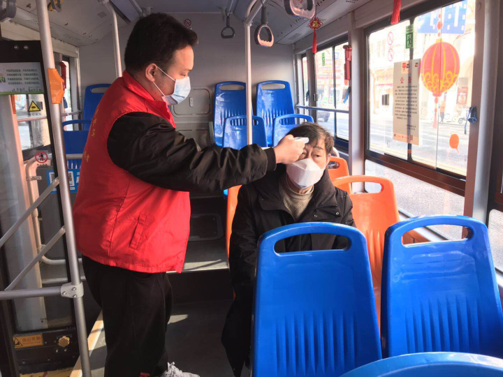 2月18日,公司團(tuán)委組織28名團(tuán)員青年志愿者奔赴一線,駐扎公交站臺積極開展疫情防控工作。志愿者們對乘客進(jìn)行體溫檢測,對車輛進(jìn)行消毒,并詳細(xì)詢問乘客是否有湖北旅居史或接觸史,建立排查臺賬,確保乘客信息可查,蹤跡可尋。團(tuán)員青年們像寒冬里的一縷暖陽,充滿了溫情和力量。