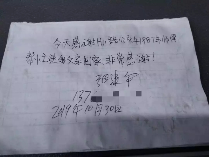 19:23,車輛順利抵達目的地,牟師傅親手將老大爺送到其家人身邊。在現(xiàn)場,老人家屬向牟師傅再三表達了謝意,并主動寫下感謝信。