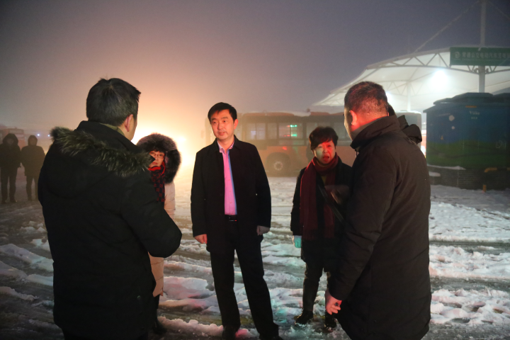 圖為市公交公司班子成員正在督導(dǎo)檢查分公司抗雪防凍工作