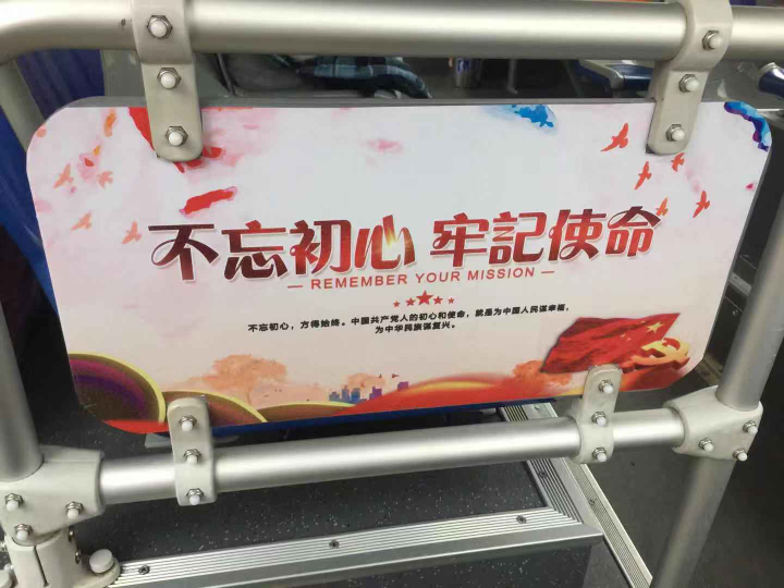 圖為“黨員示范車”車廂內(nèi)宣傳標(biāo)語(yǔ)