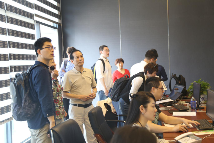 圖為調(diào)研組一行正在觀摩常德智慧公交指揮調(diào)度系統(tǒng)
