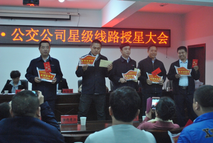 5月3日晚,“市經投集團 公交公司星級文明線路授星大會”在市公交公司2樓大會議室召開。公交公司班子成員,各相關部室、分公司負責人、線路隊長及200多名駕駛員參加了本次大會。市客運管理處公交科科長黃智華、網友代表“西嶺雪”應邀出席大會。