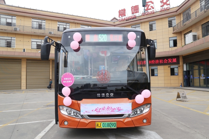 “這是我們常德公交公司首次將公交車用作婚車,不僅低碳環(huán)保,而且非常有新意。車內(nèi)還安排了我們公司五星級駕駛員“保駕護(hù)航”,讓我的迎親之路更加順暢、安全?!毙吕纱黯涡腋5卣f道。